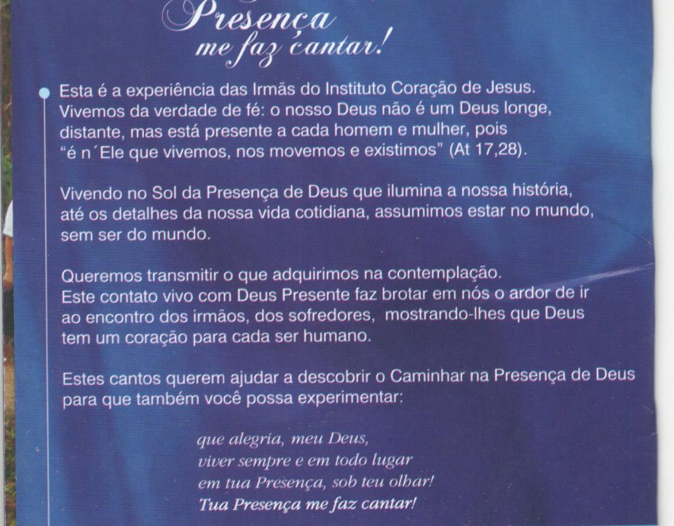 O INSTITUTO CORAÇÃO DE JESUS, COMUNIDADE CONSTITUÍDA CANONICAMENTE COMO SOCIEDADE DE VIDA APOSTÓLICA, COM VÍNCULO DE CONSAGRAÇÃO, "FOI FUNDADO COMO UMA ÍNTIMA COMUNHÃO DE VIDA COM DEUS PRESENTE"(REGRA ESPIRITUAL, P. 27). NO DINAMISMO E NA FORÇA E ALEGRIA DA UNIÃO COM DEUS PRESENTE, NÓS IRMÃS VIVEMOS NOSSO SER APOSTÓLICO. ESTE APOSTOLADO DO ANÚNCIO DO CAMINHAR NA PRESENÇA DE DEUS REALIZAMOS, SOBRETUDO, NA DEDICAÇÃO Á PASTORAL FAMILIAR PAROQUIAL